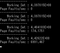 出力結果を見ると、ワーキングセットで 440[MB] ほど使用しているようです。