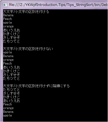 Console.WriteLine(System.Environment.NewLine + "大文字/小文字の区別を付けずに降順にする");