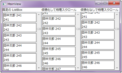 <TextBlock Grid.Row="0" Grid.Column="2" Text="仮想化なしで物理スクロール" />