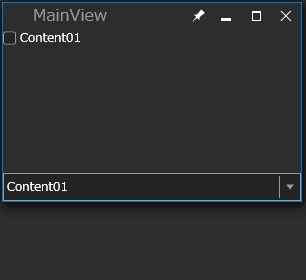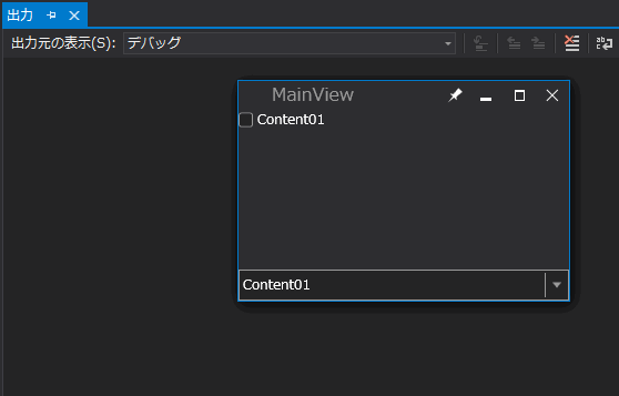 各 DataTemplate に x:Key 属性を指定していないため、コンテンツとして各 ViewModel が指定されると自動的に各 DataTemplate にしたがって対応する View に変換されて表示されるようになります。ちなみに、変換された View の DataContext は変換前のデータ、すなわちここでは ViewModel となるため、Content01View などに明示的に DataContext を指定する必要はありません。