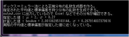 {#region ボックス=ミュラー法による正規分布の乱数生成Console.WriteLine("ボックス=ミュラー法による正規分布の乱数生成器を作る。");