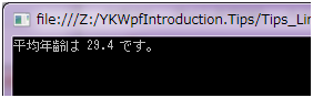Console.WriteLine("平均年齢は {0} です。", ave);