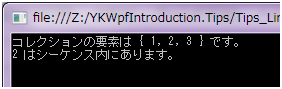 Console.WriteLine(value.ToString() + " はシーケンス内に" + (isContains ? "あります。" : "ありません。"));