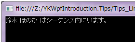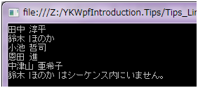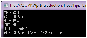 Console.WriteLine(person.Name + " はシーケンス内に" + (isContains ? "います。" : "いません。"));