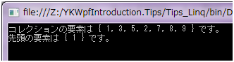 Console.WriteLine("先頭の要素は {{ {0} }} です。", top);