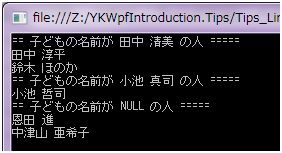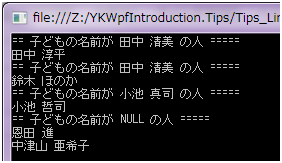 「田中 清美」という名前は同じですが、インスタンスが異なるので分類としては同じになりません。裏を返せば、同じインスタンスで定義した Child プロパティであれば comparer を指定することなく分類することができます。分類分けするキーがプロパティ値なのかインスタンスなのかを理解した上で使いましょう。