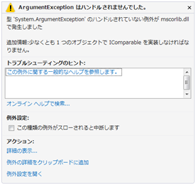 当然ですが、カスタムクラスである Person クラスをどうやって比較すればいいのかを教えていないので例外が発生してしまいます。エラーメッセージにある通りで、Max 拡張メソッドは IComparable<T> インターフェースを実装したものしか扱えません。